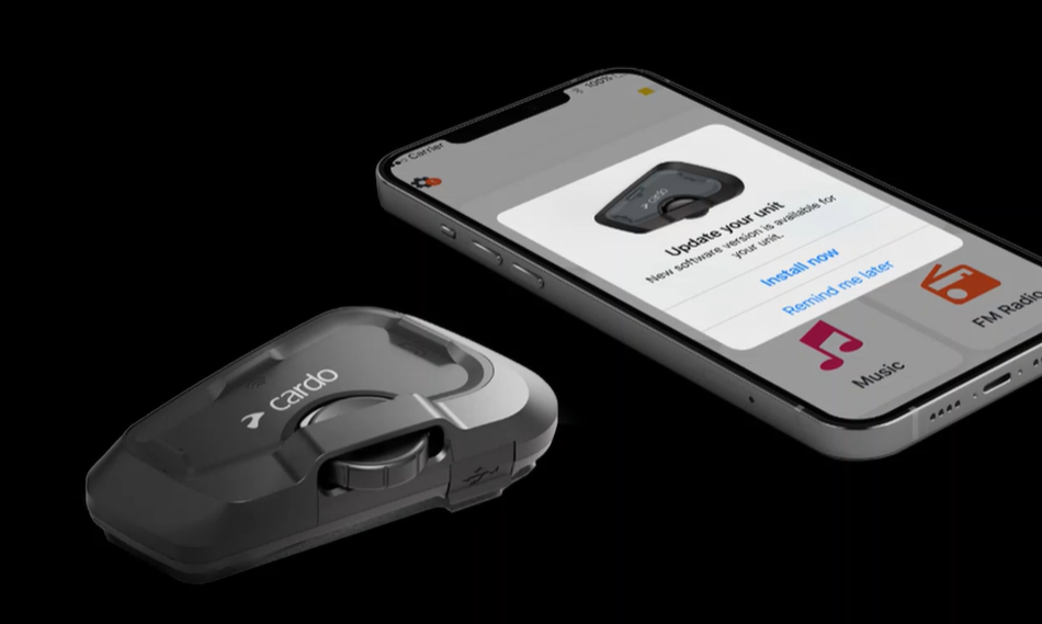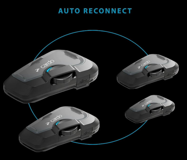 Intercom ontworpen voor onderlinge communicatie van maximaal 4 motorrijders.