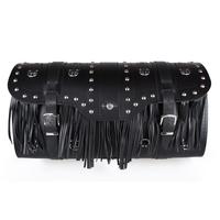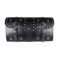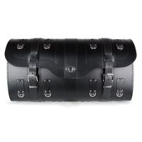 De koffer bevat een slot voor vergrendeling, leren riemen voor bevestiging aan de motorfiets en een sleutel voor het slot dat aan de riem hangt.